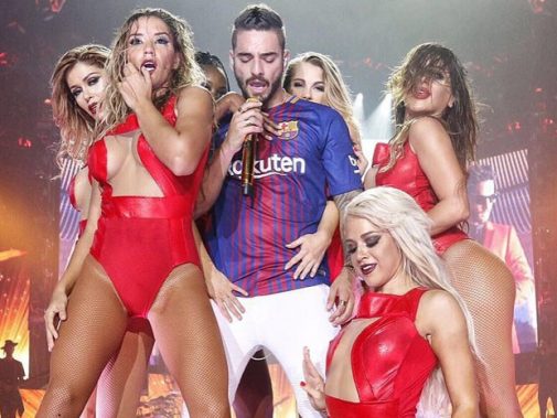 Maluma también es un gran aficionado al fútbol. Saltó al escenario vestido con la camiseta del FC Barcelona en homenaje a las dos estrellas del club, para deleite de sus fans y se llevó una gran ovación.