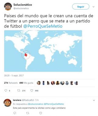La curiosa imagen no demoró en volverse viral en redes sociales, al igual que el perrito, al que bautizaron como «Firulays», inclusive le crearon una cuenta en Twitter bajo el nombre @PerroQueSeMetio, que ya cuenta con más de dos mil seguidores.