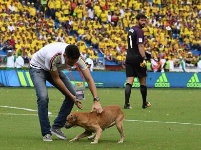 El animal se robó todas las miradas cuando ingresó a la cancha y se cruzó corriendo todo el campo. Lo insólito es que lo hizo antes de que el brasileño Neymar disparara ante el portero colombiano David Ospina. El can luego fue retirado del escenario por un voluntario que lo cargó hasta la salida.