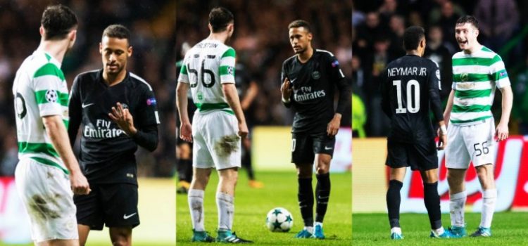 Cuando PSG goleaba 3-0 a Celtic, Neymar se burló del joven Anthony Ralston, con quien había cruzado palabras