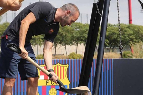 Andrés Iniesta pone la primera piedra del estadio Johan Cruyff.