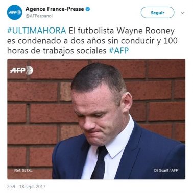 En el juicio, Rooney se declaró culpable y difundió un comunicado a través de la agencia británica Press Association donde expresó su arrepentimiento. «Quiero pedir públicamente disculpas por mi falta de juicio al conducir (con alcohol) por encima del límite legal. Fue completamente equivocado».