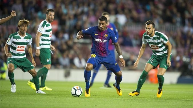 Paulinho controla el balón en el mediocampo durante el partido de liga entre el FC Barcelona y el Eibar en el Camp Nou.