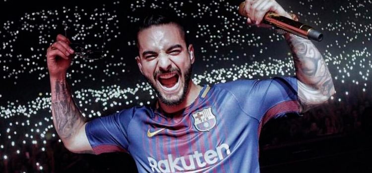 Maluma cantó en España y usó la camiseta del FC Barcelona.