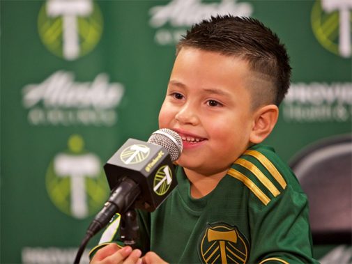 El domingo, él y su familia asistirán al partido contra Orlando City. Derrick y su hermano Josué -de 7 años- llegarán al estadio Providence Park en una limusina y se sentarán en el banquillo durante el calentamiento.Después, saltarán al campo acompañando a los jugadores durante se entona el himno estadounidense. Posteriormente, se reunirán con sus padres para disfrutar del partido.