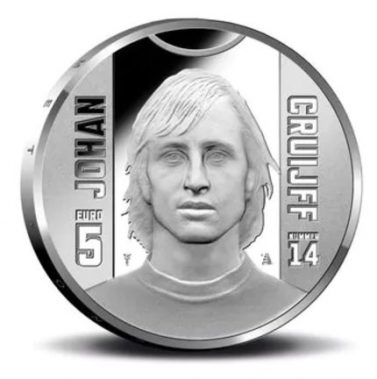 Además de su rostro, también aparece el legendario número 14 que usó en su dorsal. Aunque es una moneda de 5 euros, los coleccionistas han pagado entre los 12 y 389 euros por obtener la primer moneda.