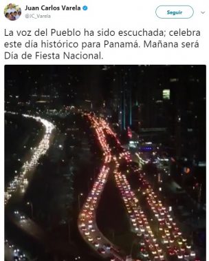 El gobernante escribió que: «la voz del pueblo había sido escuchada; celebra este día histórico con Panamá. Mañana sería día de fiesta Nacional». Palabras que acompañó con una foto panorámica de las principales avenidas de la capital llenas de aficionados celebrando el triunfo ante los ticos.