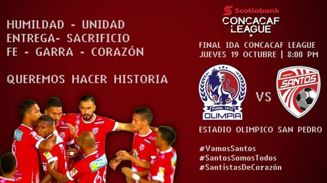 El Olimpia y el Santos de Guápiles jugarán esta noche en San Pedro Sula el partido de ida de la final de la Liga Concacaf. El duelo está programado para las 8 de la noche y se disputará a puerta cerrada en el Estadio Olímpico. Lo anterior porque la Concacaf castigó el Estadio Nacional por los hechos violentos durante el partido contra el Alianza salvadoreño.