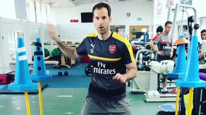El portero checo del Arsenal muestra uno de sus secretos para entrenar