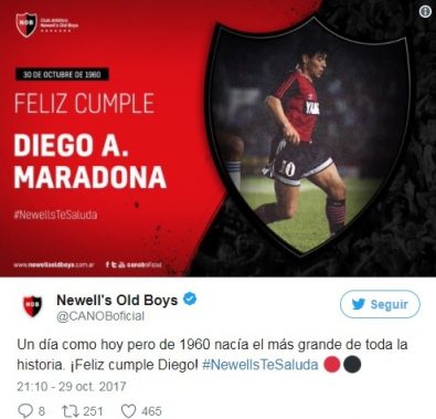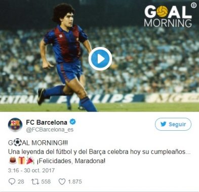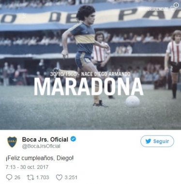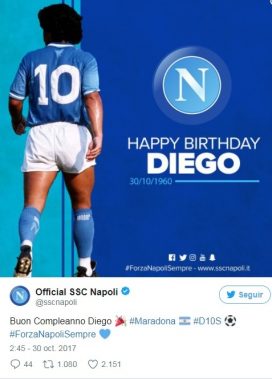 El Napoli italiano, el equipo que Maradona potenció en la década del 80, dejó de publicar mensajes en italiano por un rato para simplemente dedicarle un «Feliz cumpleaños, Diego».