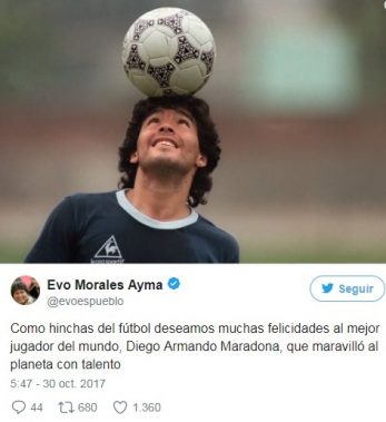 El argentino Diego Maradona recibe saludos desde todos los rincones del planeta por su cumpleaños