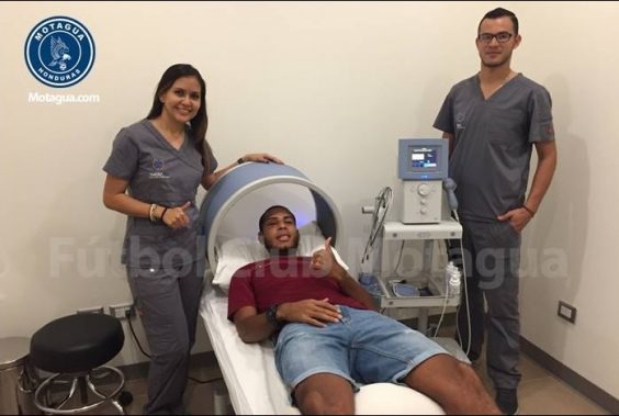 Bajo la supervisión del fisioterapeuta Jorge Pacheco, Eddie Hernández continuará con su recuperación hasta estar listo para volver a las canchas y seguir anotando goles. (Fotos y vídeo cortesía de Fútbol Club Motagua)