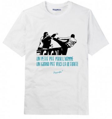El mismo día en que el Olympique de Marsella marginaba provisionalmente a Patrice Evra del equipo por su brutal patada a un aficionado, una empresa marsellesa denominada «Triaaangle» lanzó una camiseta en la que se burla de la acción protagonizada por el futbolista francés en el encuentro frente al equipo portugués del Vitoria de Guimaraes.
