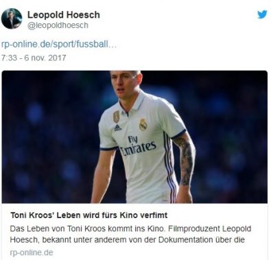 La noticia fue confirmada por el propio jugador en declaraciones brindadas al periódico alemán «Bild». El rodaje del documental comenzará este mes de diciembre pero se estrenará en 2019 y será dirigida por Leopold Hoesch, quien fue el encargado de la propuesta al jugador madridista.