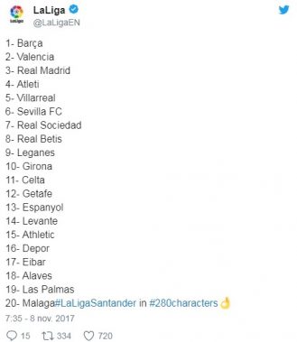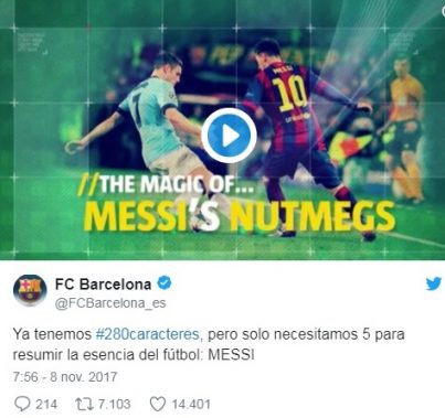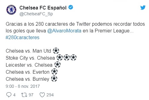 La más reciente actualización de Twitter duplicó el espacio para cada publicación. Ahora ahora serán 280, en lugar de 140, los caracteres que todo usuario podrá utilizar para expresar sus ideas. Esta innovación cayó de la mejor manera en el mundo del fútbol.