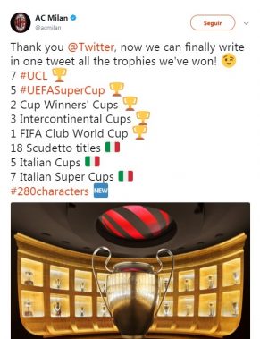 Distintos clubes europeos mostraron todo su ingenio para aprovechar este novedoso incremento, reflejado en la red social. Por cierto, el Milán de Italia fue uno de los «ganadores».