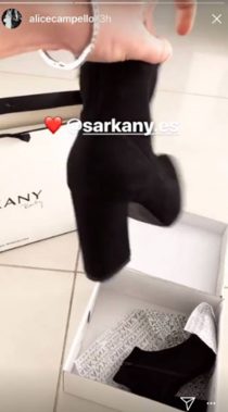 Campello mostró a través de las historias de Instagram un regalo muy especial que recibió de Anto. No dudó en compartir una imagen del presente: un par de zapatos negros de tacón alto de la marca Sarkany. El hermoso par de botas cuesta 565 euros.