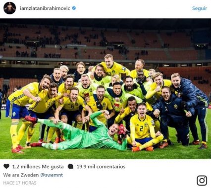 El delantero sueco del Manchester United publicó una foto del equipo sueco celebrando en el estadio San Siro, acompañado de un breve mensaje que dice «Nosotros somos Suecia».