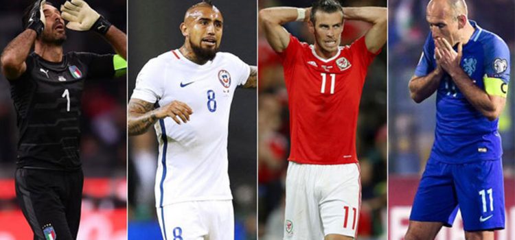 Holanda y Chile, aunque no tienen títulos, son otros de los pesos pesados que no estarán en Rusia. Además, varios futbolistas que, son cracks en sus equipos, no acompañarán a sus equipos nacionales.