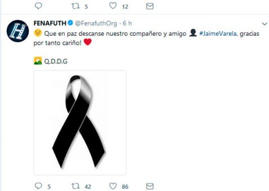 De igual manera, la Fenafuth comunicó que declaran tres días de duelo sin suspensión de labores y realizarán un minuto de silencio en su honor en la próxima reunión. ¡En paz descanse Chele Jaime Varela!