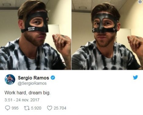 Tras la fractura de tabique que sufrió en el derbi del Wanda Metropolitano frente al Atlético, el capitán del Real Madrid, Sergio Ramos, publicó unas imágenes con la nueva máscara de «superhéroe» en sus redes sociales. Inmediatamente las bromas de los usuarios no tardaron en aparecer.