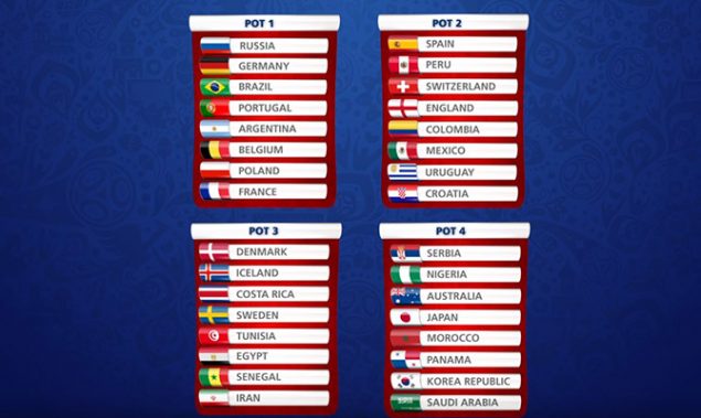 Tras la elección de los cabeza de serie, se procederá a ubicar a los ocho del copón 2 (España, Perú, Suiza, Inglaterra, Colombia, México, Uruguay y Croacia). Después a los del copón 3 (Dinamarca, Islandia, Costa Rica, Suecia, Túnez, Egipto, Senegal e Irán). Finalmente los del copón 4 (Serbia, Nigeria, Australia, Japón, Marruecos, Panamá, Corea del Norte y Arabia Saudita) pero con algunas particularidades.