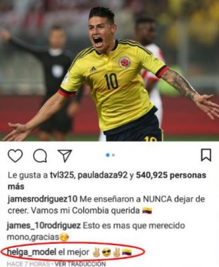 Algunos usuarios de la red social han destacado el hecho de que Helga use los mismos emoticones que ha empleado para elogiar a James en momentos clave de su carrera futbolística como la clasificación de Colombia al Mundial de Rusia.