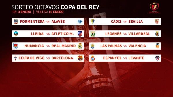 Los dieciséis mejores equipos de la Copa del Rey ya conocen a su rival en los octavos de final. La serie está conformados por 12 equipos de La Liga, dos de la Segunda División y dos de Segunda B, que es la tercera categoría del fútbol español.