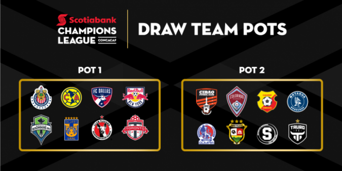 Mientras que el bombo 1 lo integran los mexicanos Chivas, América, Tigres y Tijuana. Además de los estadounidenses FAc Dallas, NY Red Bull , Seattle Sounders, y Toronto FC de Canadá.