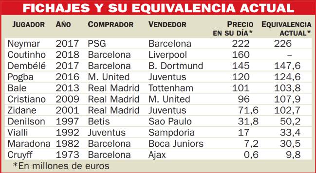 El fútbol camina más rápido que la vida. Es sólo una frase, pero quizá valga como imagen de esa locura de fichajes que tiene en Coutinho su última parada. 160 millones de euros tienen la culpa de su viaje del Liverpool al Barça. Echemos la vista atrás, hagámoslo 45 años. Estamos en Ámsterdam, patria de un Ajax que por entonces dominaba el fútbol europeo de la mano/bota de un chaval con aires de Nureyev. Johan Cruyff es el mejor jugador del mundo y todos le quieren, pero es el Barça el que lo ficha por una cifra que hace los ojos chiribitas: un millón de dólares o 100 millones de pesetas. Tiremos de calculadora y traduzcamos a nuestra moneda actual: 601.012 euros. Ahora bien, esa cifra hay que situarla en su contexto.