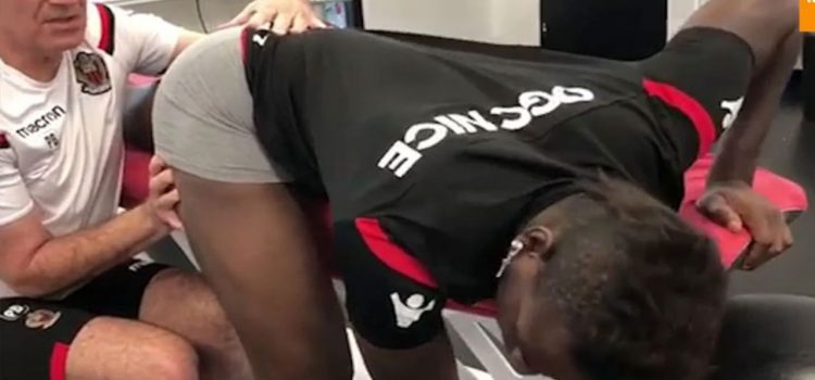 El delantero italiano publicó un vídeo en su cuenta de Instagram en el que aparece inclinado y siendo inspeccionado por un médico de su Club, el Niza. El dóctor le masajea los gluteos mientras el futbolista lanza gritos de dolor.