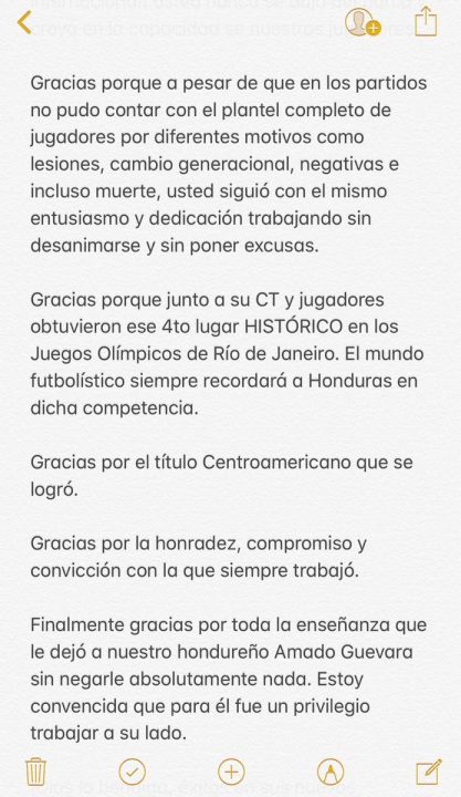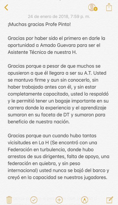 Lucía Aragón, esposa Amado Guevara, exasistente técnico de la Selección de Honduras en la eliminatoria al Mundial de Rusia, publicó en sus redes sociales una carta de agradecimiento dirigida al entrenador colombiano Jorge Luis Pinto.