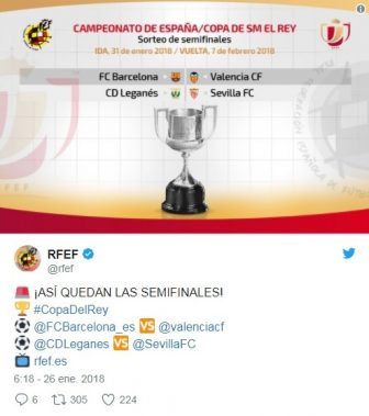 Barcelona-Valencia y Leganés-Sevilla, en las semifinales