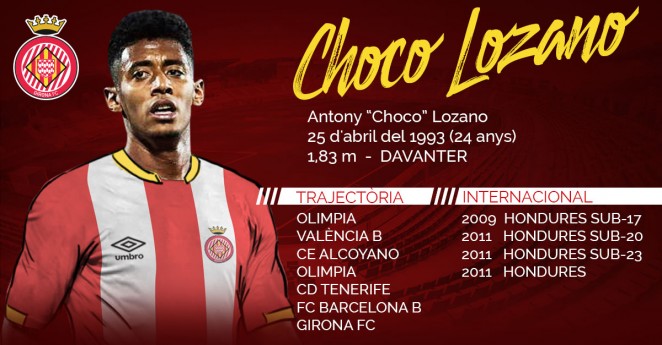 El nuevo fichaje del Girona, Anthony Lozano, acumula más de un centenar de partidos en Segunda A. El delantero hondureño jugará en su quinto equipo en España, desde que aterrizó en 2011. Ha defendido las camisetas del Valencia Mestalla, Alcoyano, Tenerife y con el filial del FC Barcelona.