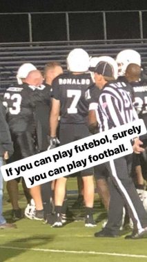 CR7 no quiso ser menos que Messi y se puso su camiseta de fútbol americano para probarse en otro deporte