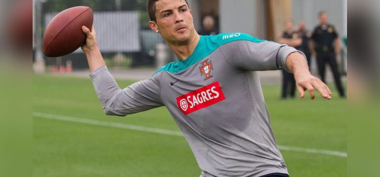 Después de que Lionel Messi incursionara en el fútbol americano y justo cuando el astro Tom Brady volvió a declarar su amor por el argentino, Cristiano Ronaldo no quiso ser menos y cambió la pelota redonda por la ovalada.