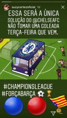 Suzy dejó un beso en un posteo de Instagram, pero fue mucho más allá y dejó una historia en referencia al próximo choque entre Chelsea y Barcelona, por octavos de la Champions.