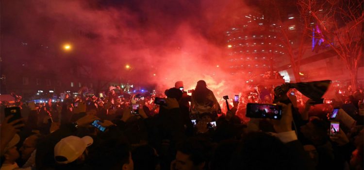 Pues cumplieron. La llegada del bus de Real Madrid al estadio fue eufórica. Una multitud de fanáticos cantaron mientras el auto car se dirigía al templo madridista.