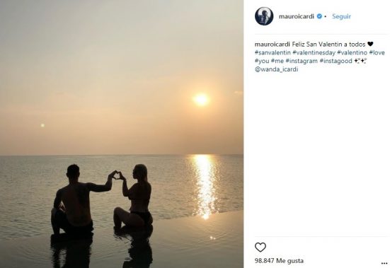 Icardi publicó una foto suya con Wanda, sentados a orillas del mar, formando un corazón con sus manos. La publicación le valió un «me gusta» de su gran amor. Claro, ella sí lo sigue a él.