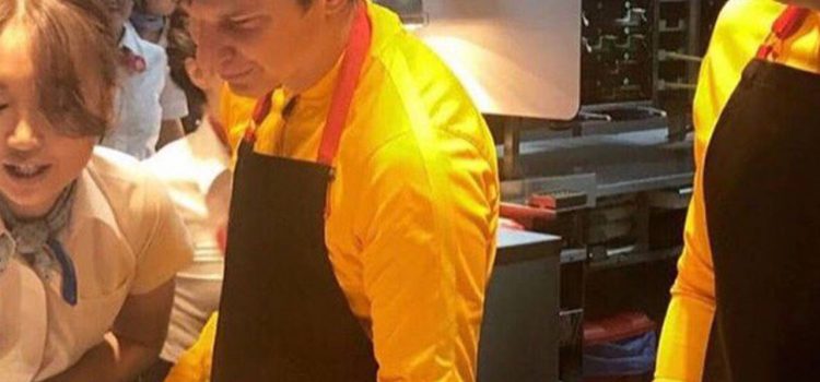 Su entrenador, el español Carlos Alós, ha compartido una foto del acto promocional, en la que se ve a Arshavin ataviado como un trabajador de la empresa y sirviendo su pedido a una clienta.