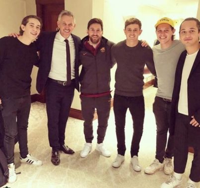 Lineker aprovechó para saludar a algunos jugadores barcelonistas de los que tantas veces ha expresado públicamente su admiración. Asimismo se retrató con Leo Messi y Luis Suárez.