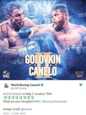 Canelo Álvarez enfrentará el próximo 5 de mayo a Gennady Golovkin por los títulos mundiales de peso Medio. Muy difícil que el futbolista sea su invitado de lujo, pues por esos días los «Colchoneros» recibirán al Espanyol en la jornada 36 de la Liga española.