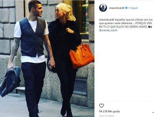 Mientras que el jugador del Inter, que confía plenamente en su mujer usó su cuenta de Instagram para enviar un mensaje de apoyo a su mujer. «Aquellos que te critican son los que quieren verte diferente… Porque ven en ti lo que ellos no serán jamás», escribió en una foto junto a su mujer, tomados de la mano caminando.