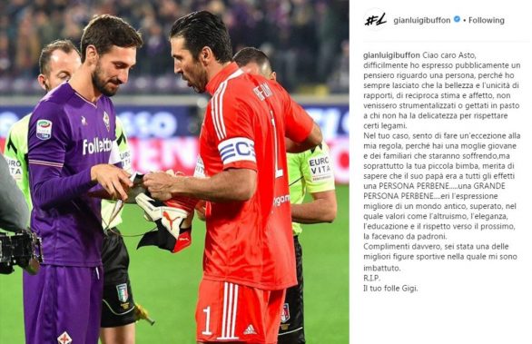 «Sobre todo tu hija merece saber que su padre era una gran y buena persona. Eras (Astori) la mejor expresión de un mundo antiguo, superado, en el que valores como e altruismo, la elegancia, la educación y el respeto para los demás eran lo más importante», escribió Buffon en Instagram.