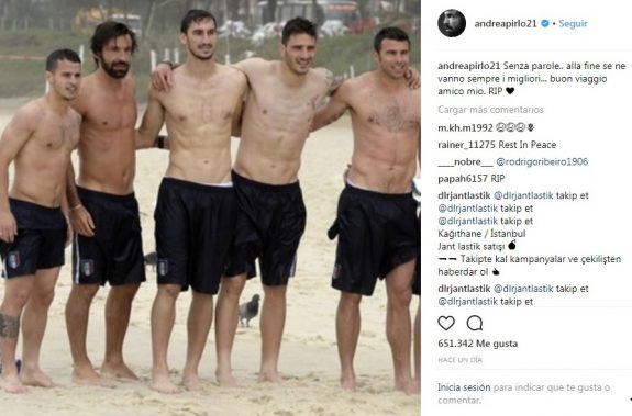 Otros referentes del fútbol italiano como Andrea Pirlo y Francesco Totti también hicieron referencia a la muerte de el jugador que supo ser internacional con la selección azurra.