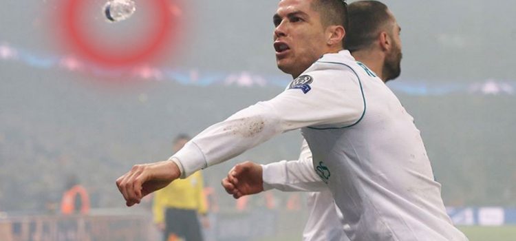 Cristiano se fue a una de las esquinas y se lanzó de rodillas para ser abrazado por Carvajal. Antes de que llegaran el resto de compañeros, CR7 se giró a la grada y a la vez que cerraba y lanzaba el puño una botella con agua le rozó, según captó el cámara de Realmadrid.com.