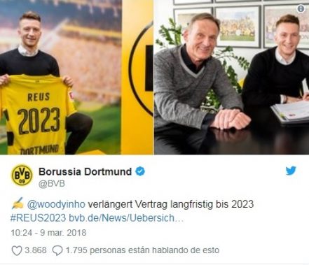 ¡Marco se queda! «Estamos muy contentos de anunciar la renovación del contrato con Marco Reus «, dijo el presidente del consejo, Hans-Joachim Watzke. Aunque no se han hecho oficiales los montos del acuerdo.
