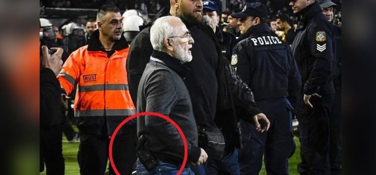 Savidis invadió el campo llevando una pistola en el cinturón. El polémico dirigente bajó a la cancha junto a sus guardaespaldas antes de terminar el juego por la vigésimo quinta jornada de la Liga de Grecia.
