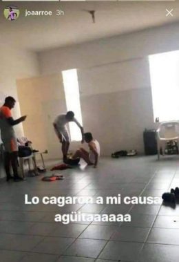 La grabación, que ya ha sido eliminada, fue subida a las redes sociales por Joazhiño Arroe, uno de los implicados. En ella se muestra al utilero en el piso y pidiendo a los jugadores que se detengan.