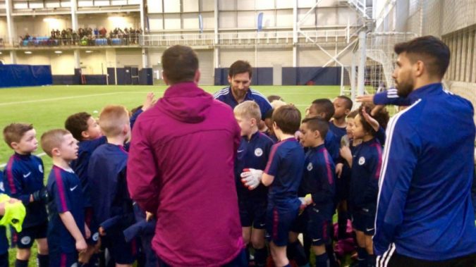 Los niños de la academia de fútbol del City quedaron maravillados con la presencia de las figuras argentinas